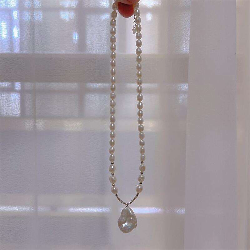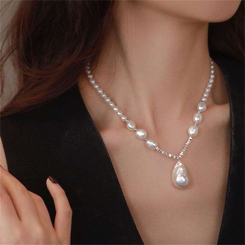 Collier polyvalent en perles d'eau douce naturelles, style rétro français élégant, chaîne fine en argent S925, accessoire pendentif raffiné pour