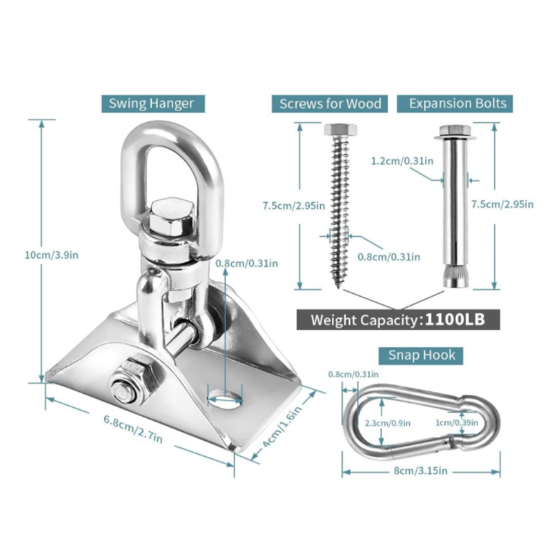 Crochet de suspension rotatif polyvalent avec plaque fixe et kit de suspension en acier inoxydable robuste pour usage commercial