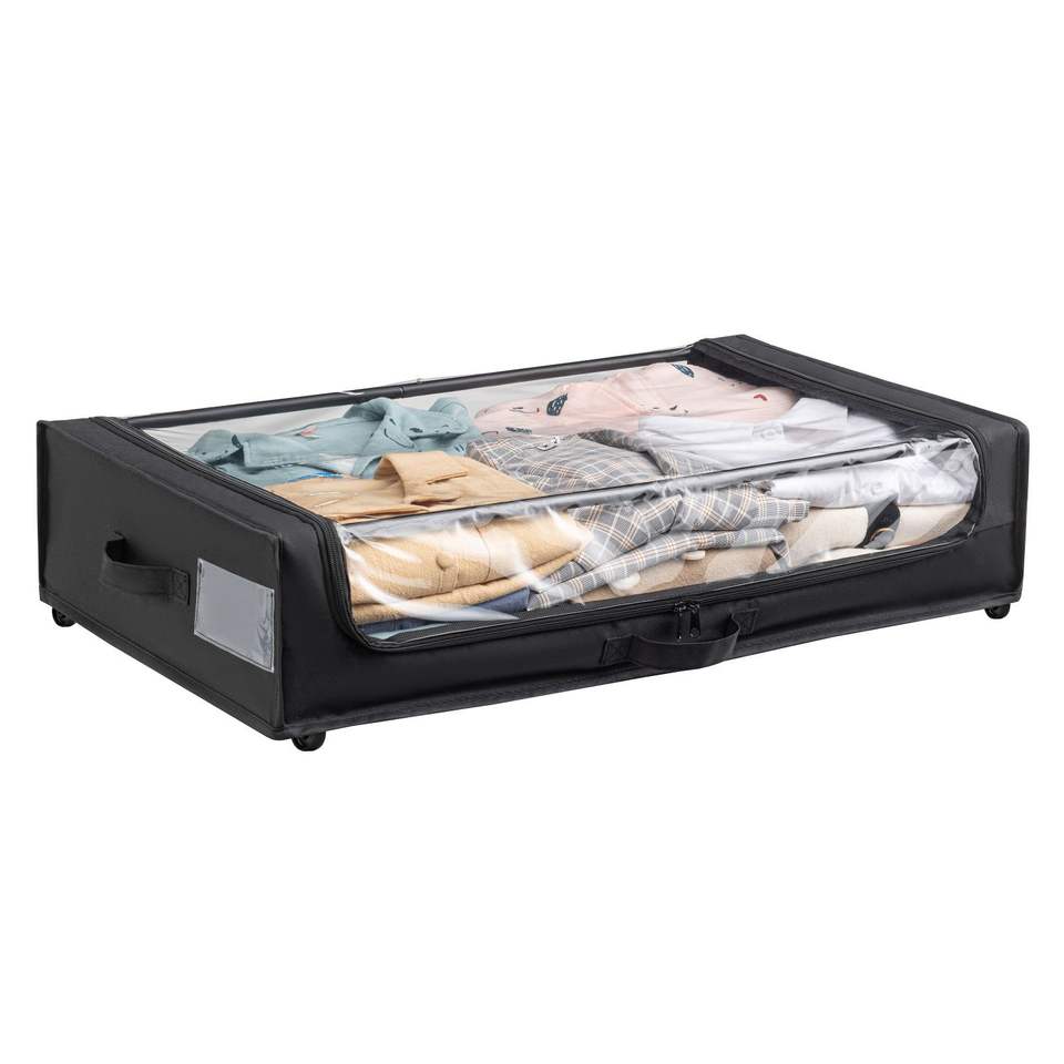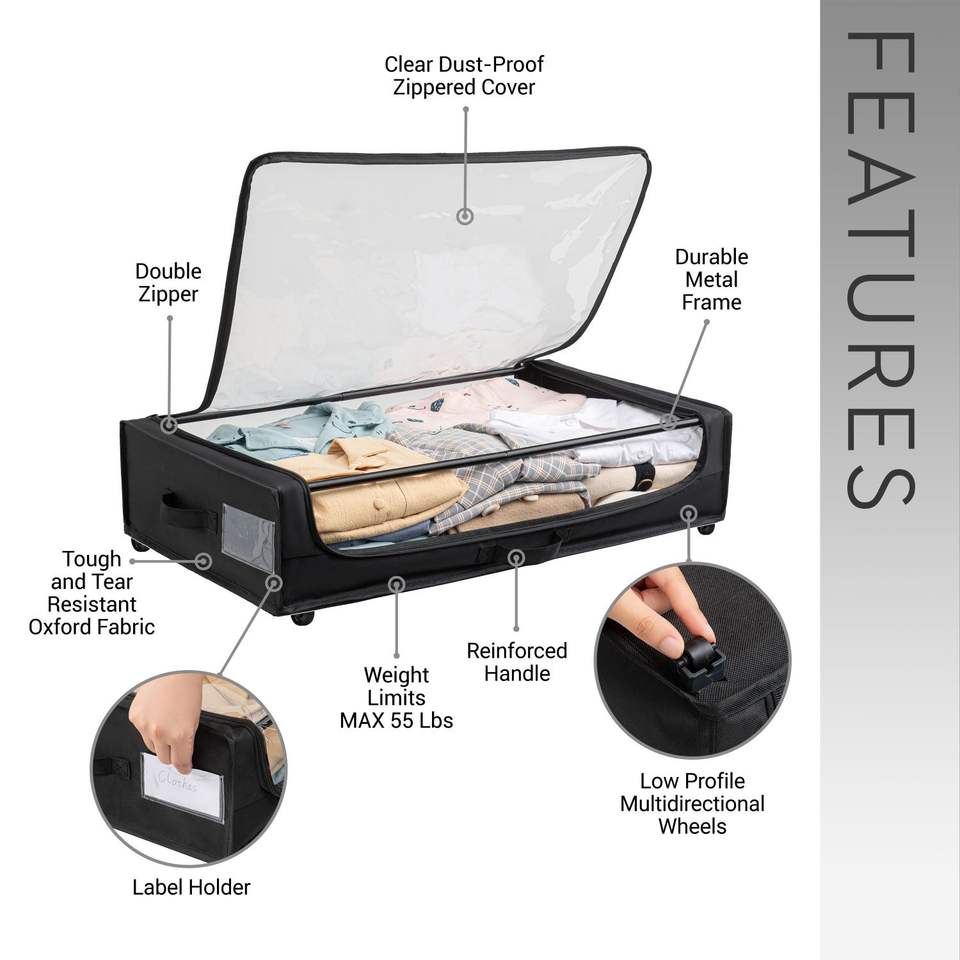 Ensemble polyvalent de 2 conteneurs de rangement sous lit à roulettes, roues multidirectionnelles à glissement fluide, couvercle transparent, design gain de place