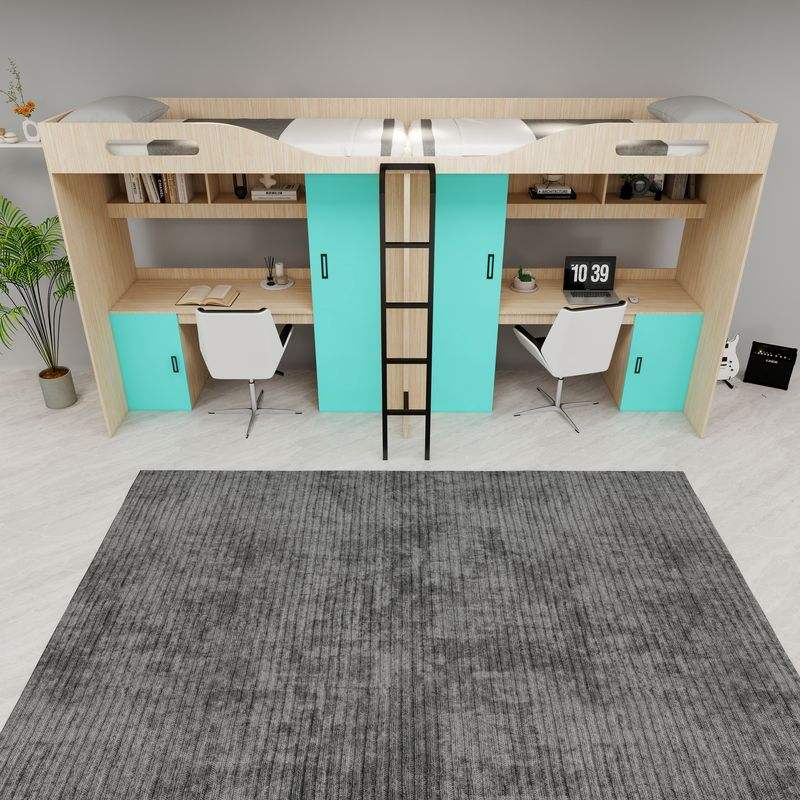 Lit mezzanine polyvalent et peu encombrant avec bureau d'ordinateur et étagères pour adolescents, taille double