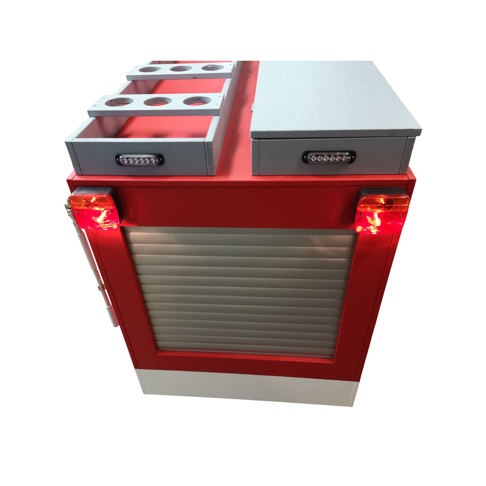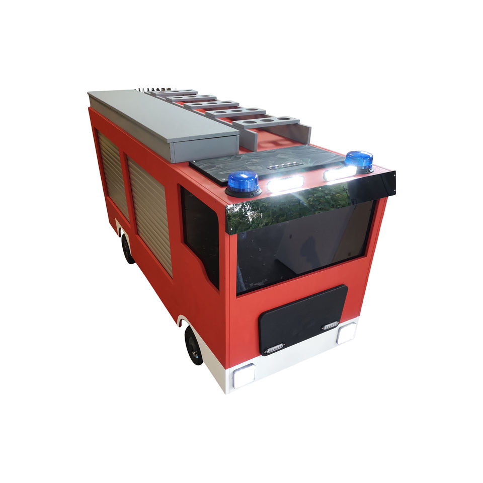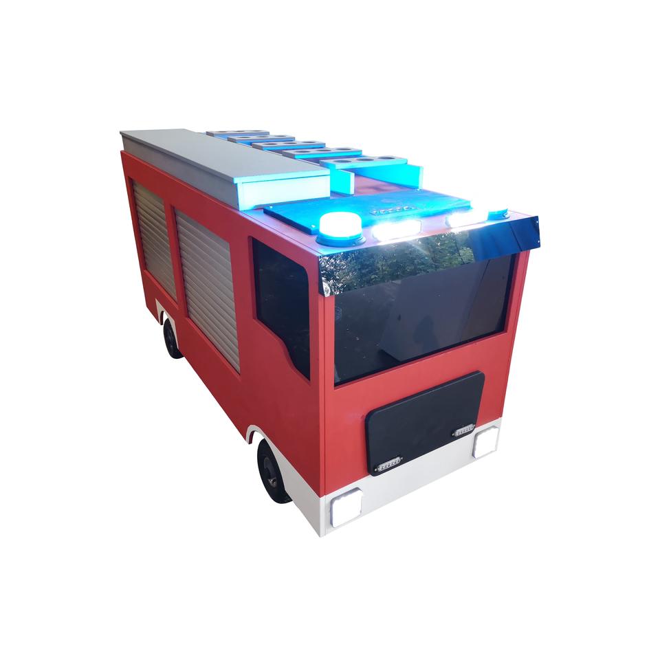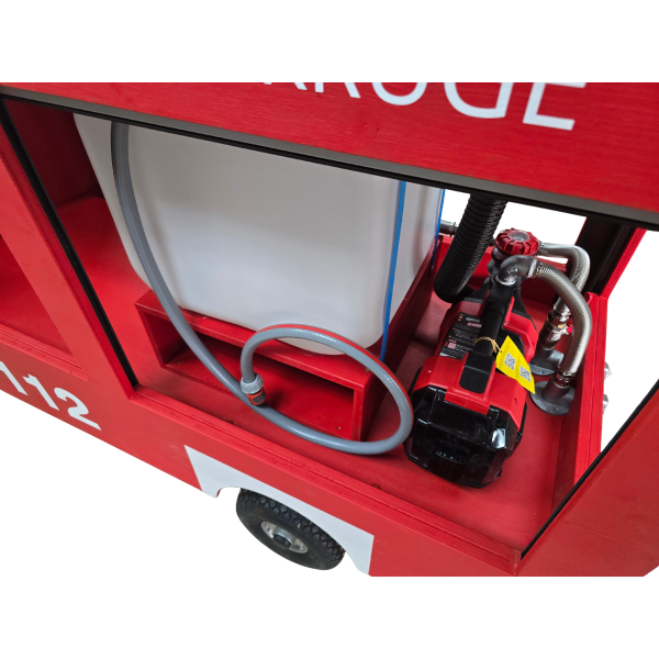 Chariot de Pompiers "Version 2" incluant des accessoires tels que lumière bleue et stores, réservoir d'eau et pompe à eau, store