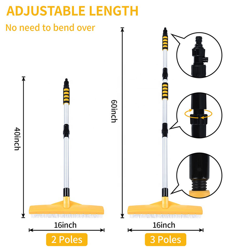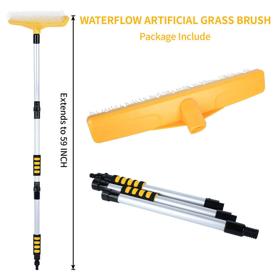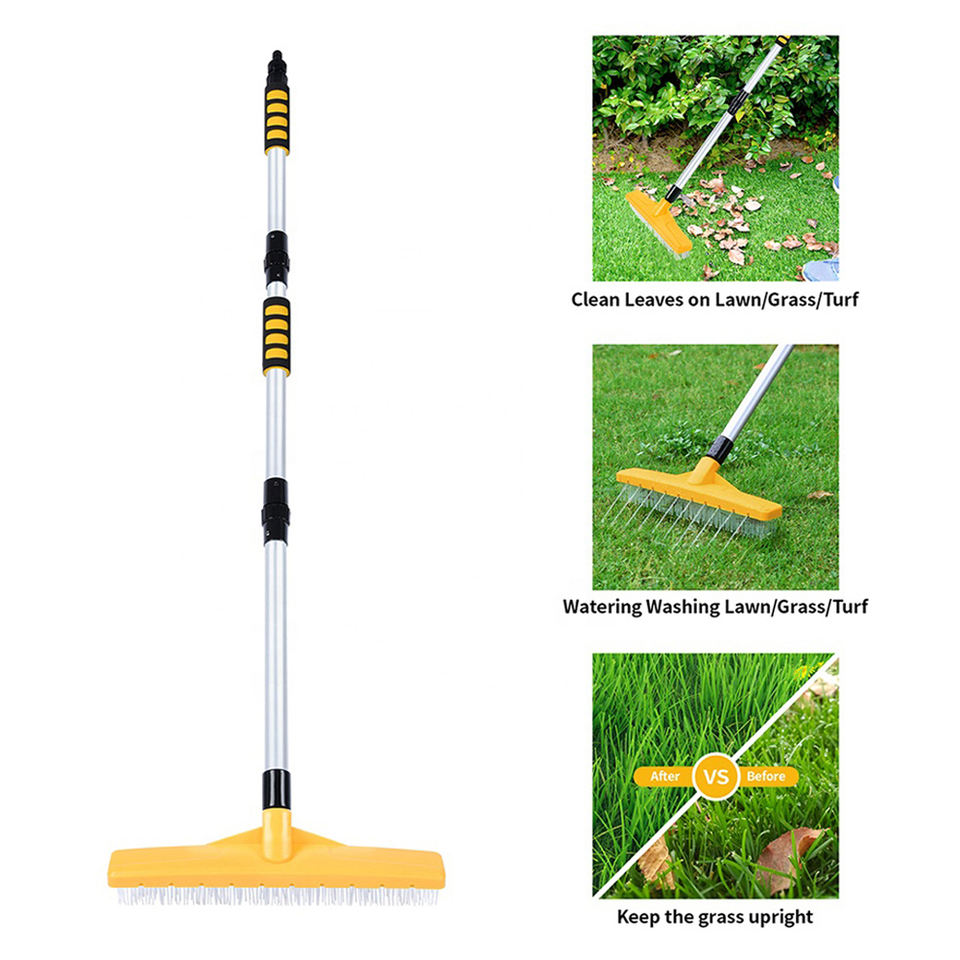 Vertak brosse de nettoyage de jardin multifonction, flux d'eau, balai de jardin, poignée télescopique, tapis, râteau à gazon artificiel