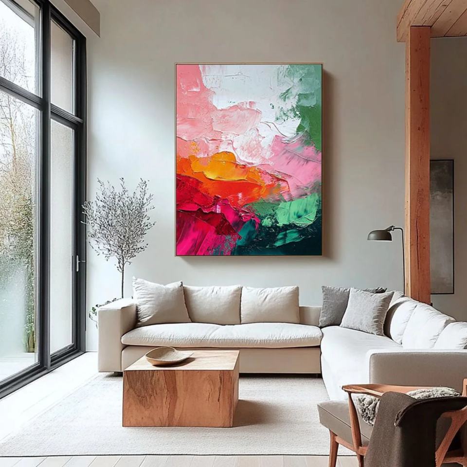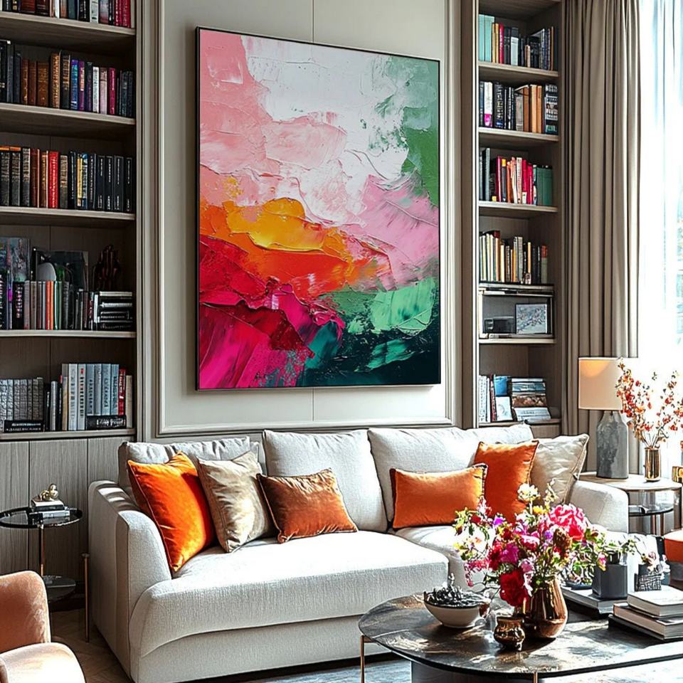 Art mural 3D vertical abstrait coloré, peinture sur toile contemporaine peinte à la main pour la décoration moderne de la maison et des galeries