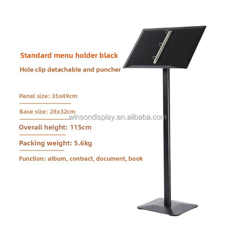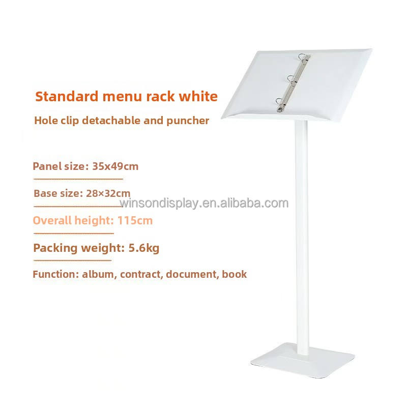 Présentoir vertical pour pages de menu de restaurant et présentoir rabattable pour affiches individuelles de la brochure