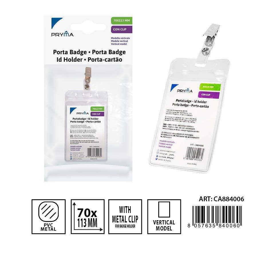 Porte-cartes d'identité vertical avec clip 70x113mm-Porte-cartes