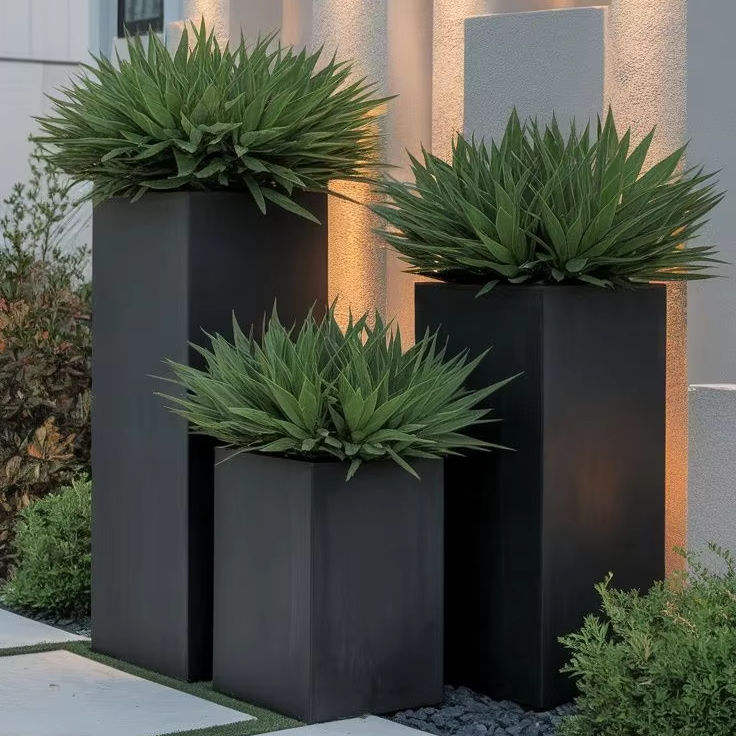 Jardinière rectangulaire verticale en fibre de verre (FRP) classique, écologique, haute, noire, avec fonction de drainage pour jardin domestique