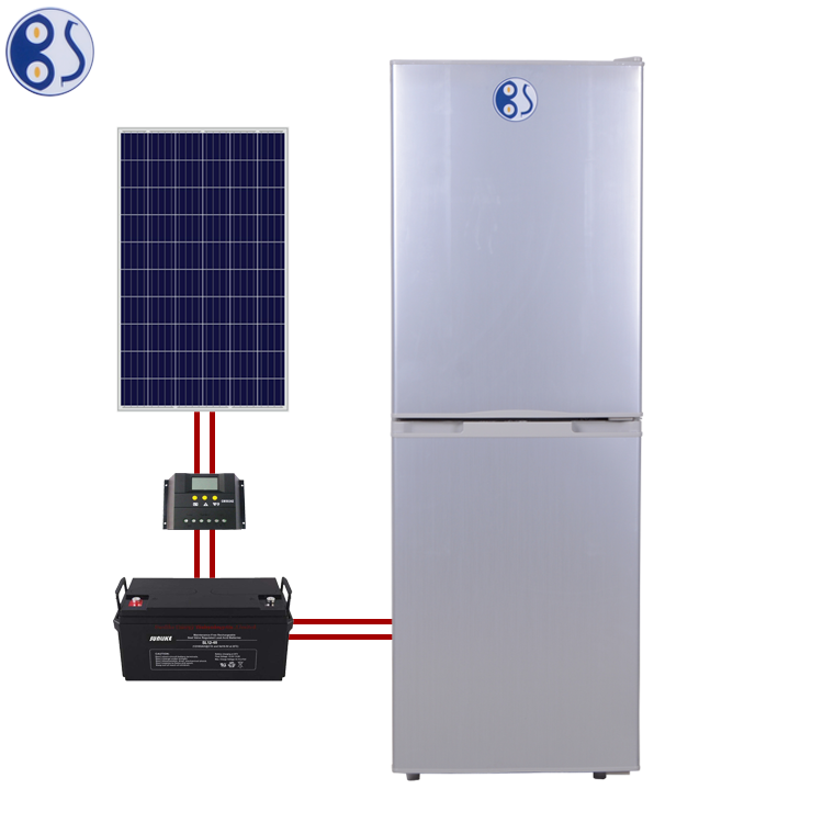 Réfrigérateur vertical réfrigérateur solaire réfrigérateur congélateur supérieur efficacité énergétique DC 12V 24V 198L à vendre Portable mécanique gris