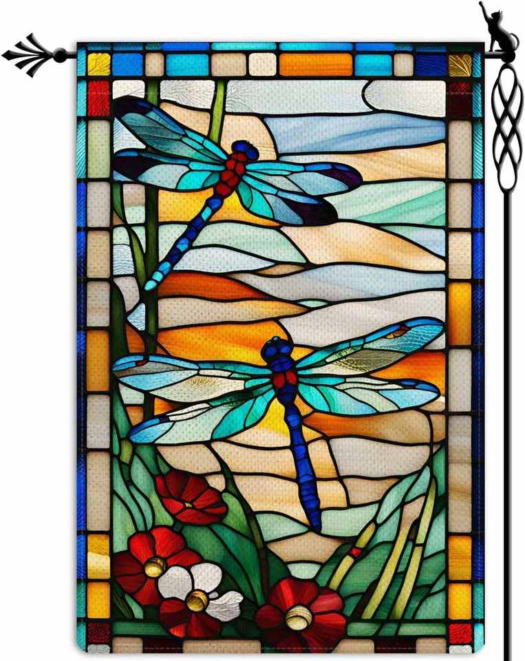 Drapeau de jardin vertical libellule printemps-été 12x18 pouces, décoration extérieure pour ferme, cour et pelouse, sans mât