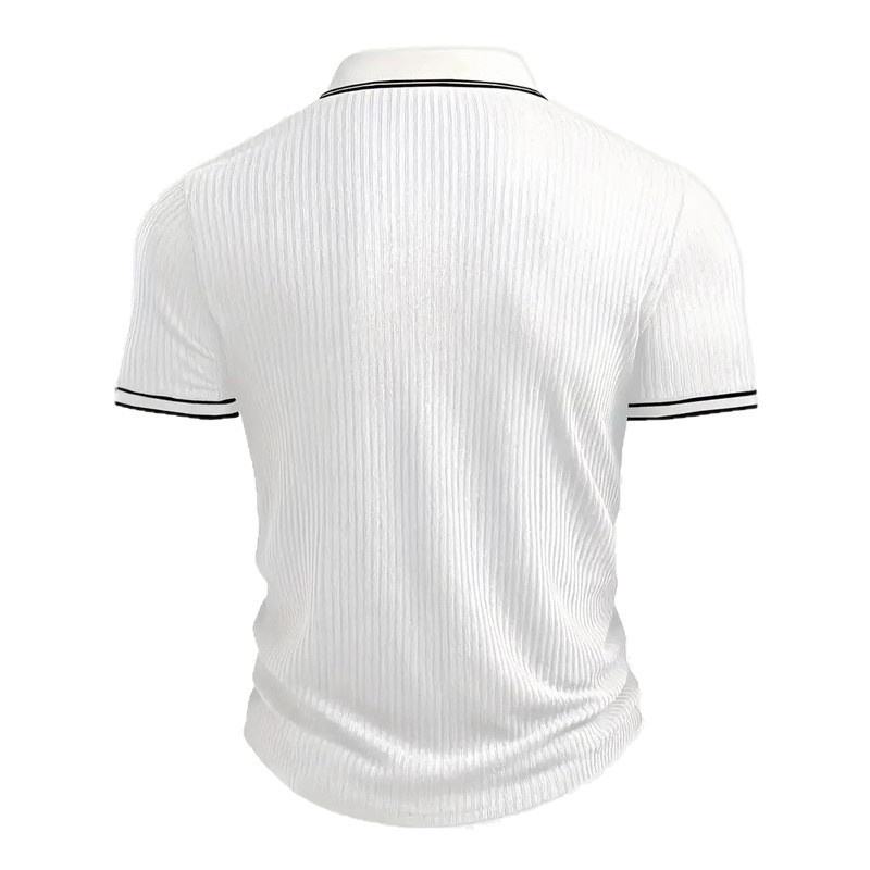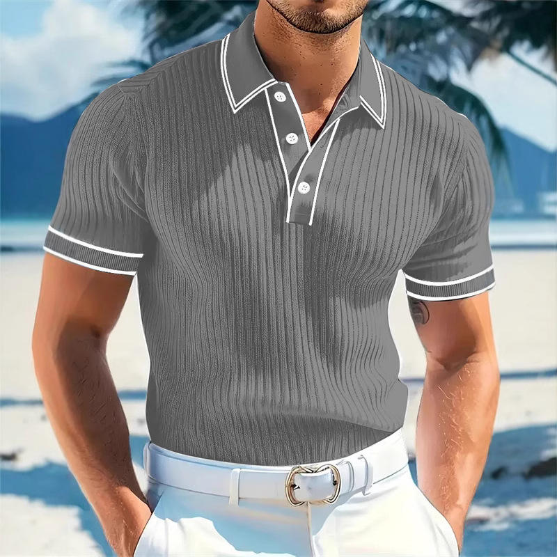 Polo homme à rayures verticales, col rabattu, manches courtes, bordure contrastée, fermeture boutonnée, coupe ajustée