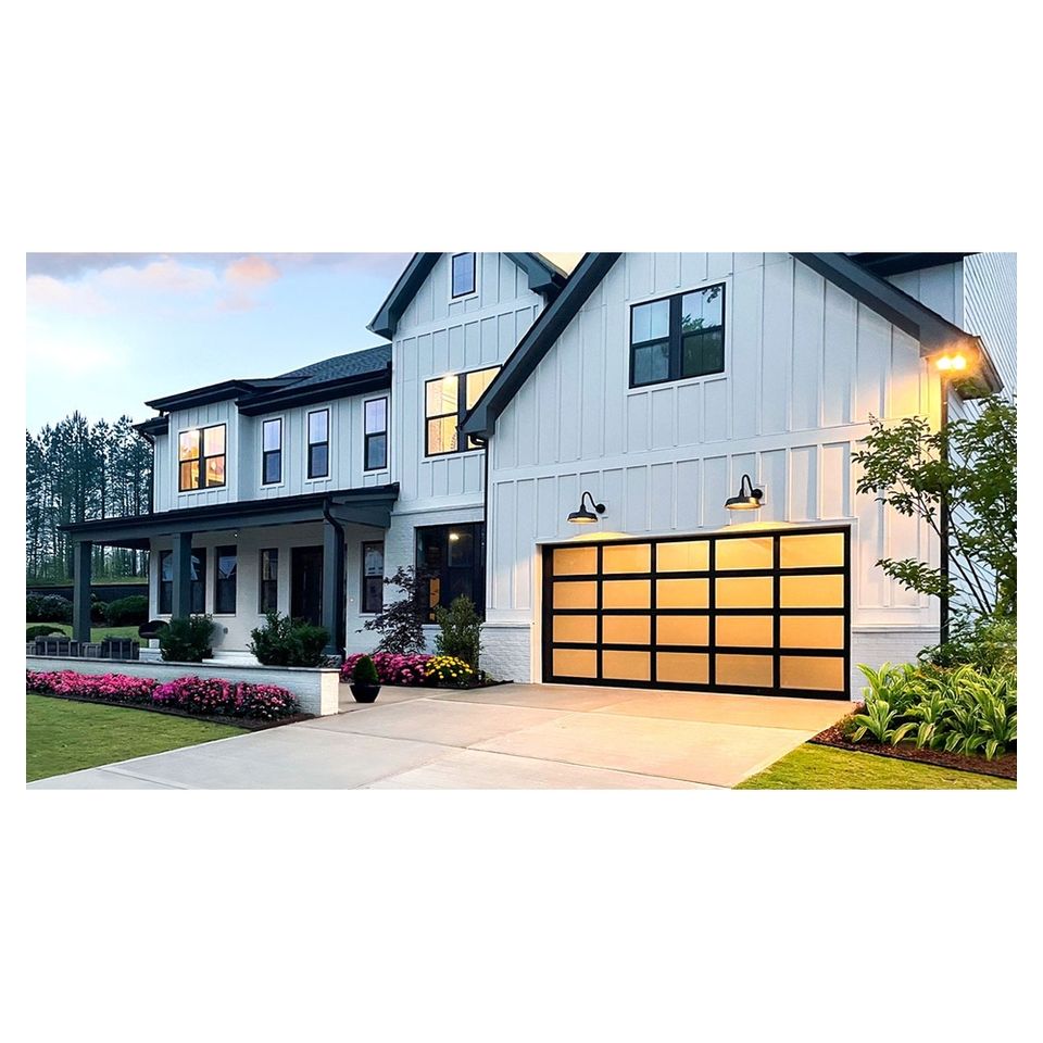 Panneaux de fenêtre en verre à rayures verticales et dégradées pour l'installation murale en briques résidentielles modernes, porte de garage