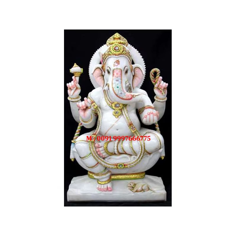 Statue de Ganesha en marbre blanc, très belle, faite à la main, de haute qualité, pour la dévotion, la décoration de la maison, du temple et du bureau.
