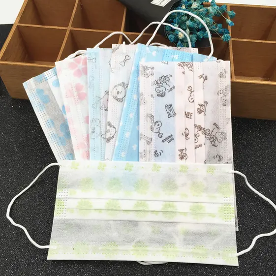 Masque de protection chirurgical noir jetable non tissé à 3 plis très bon marché pour enfants, emballé individuellement avec impression