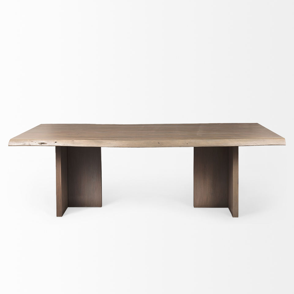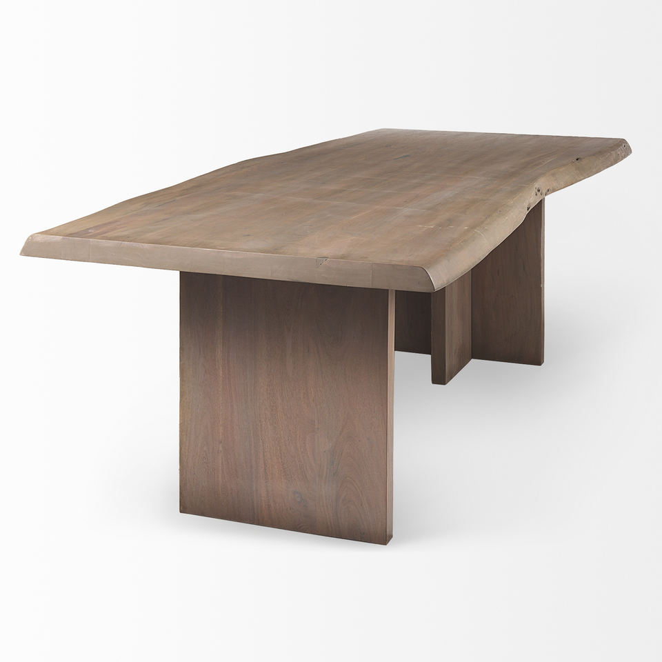 Table de salle à manger de cuisine très durable, en bois d'acacia massif de qualité supérieure, bords naturels, forme irrégulière épaisse, pieds modernes