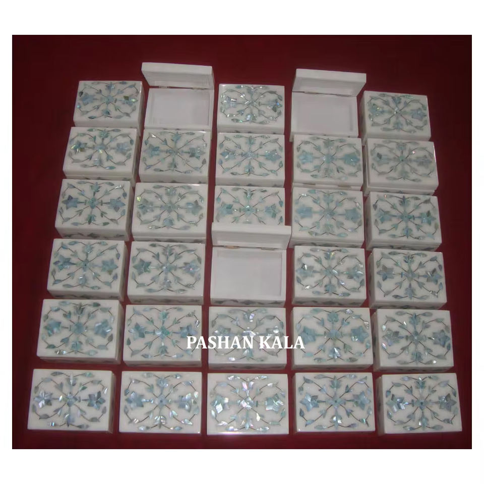 Boîtes à bijoux très exclusives en marbre blanc bleu nacre incrustées Fabrication de l'Inde pour la maison et les cadeaux de mariage