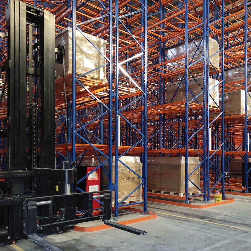 Système de rayonnage pour allées très étroites, maximise l'espace de stockage, améliore l'utilisation de l'espace, adapté au stockage de palettes à grande échelle