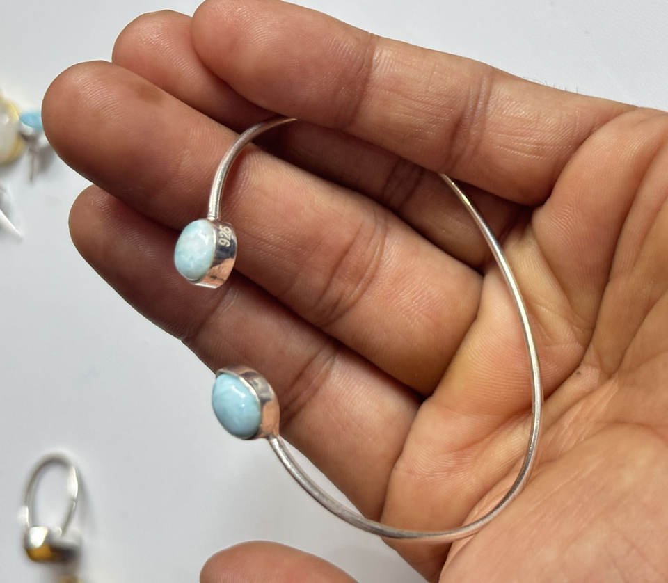 Very Nice Locking Bangle Larimar Gemstone Adjustable Bangle For Men's & Women's Wear Fashion Gift Jewelry For Party Wear