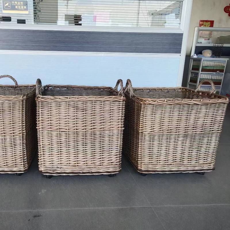 Panier carré doublé de très bonne qualité, en osier, pour le bois de chauffage, panier de rangement pour bûches en osier avec roulettes