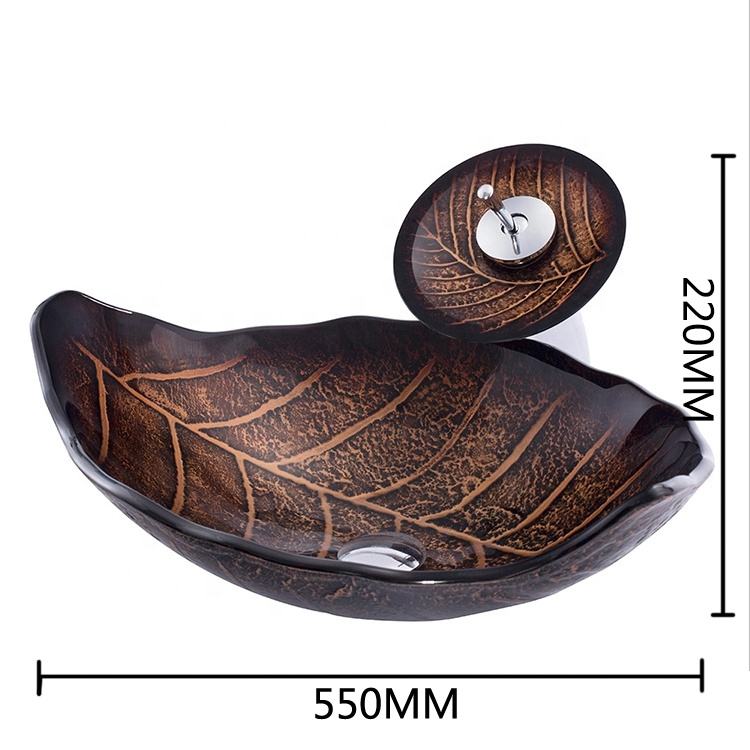 Nom du produit:Salle de bains en forme de feuille en verre trempé vasque lavabo
