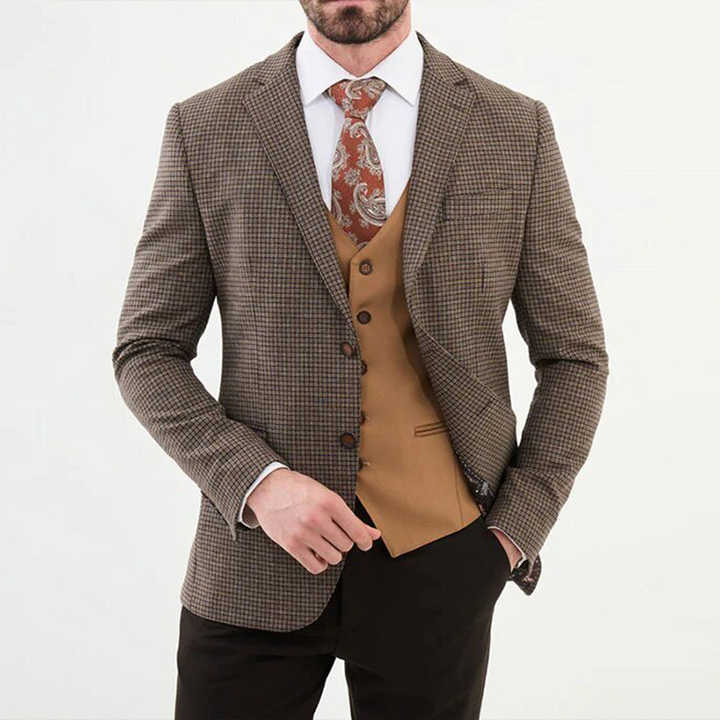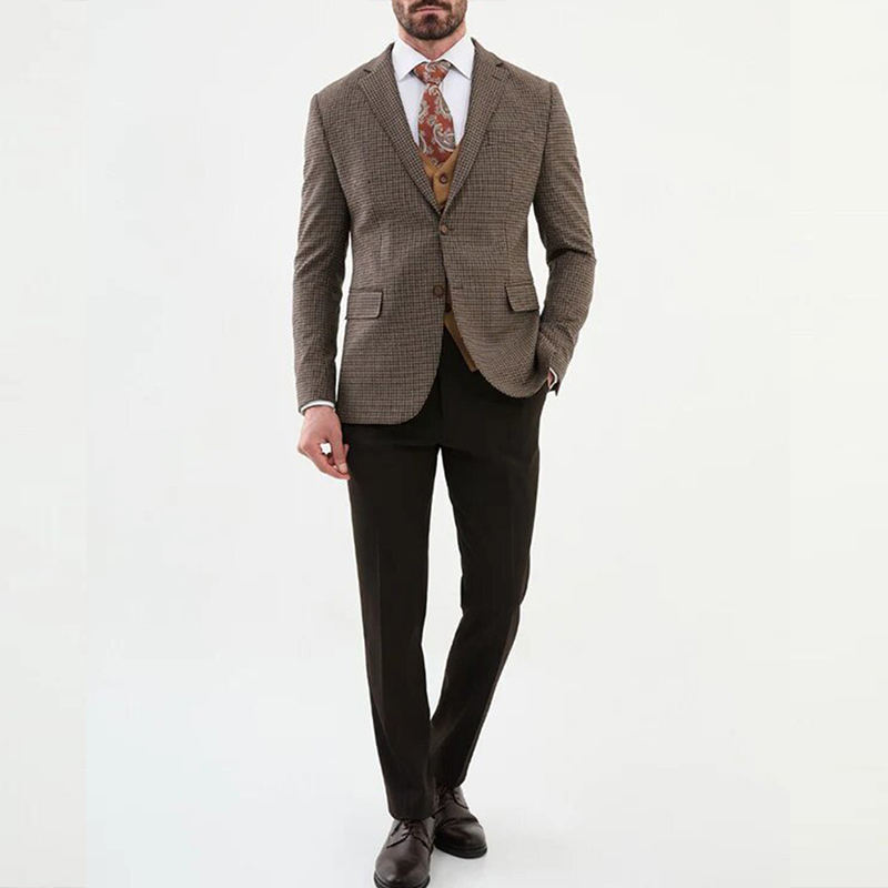 Veste Homme Costume hommes costumes veste exquis simple boutonnage Plaid Blazers pour mariage marié loisirs haut de gamme Style italien