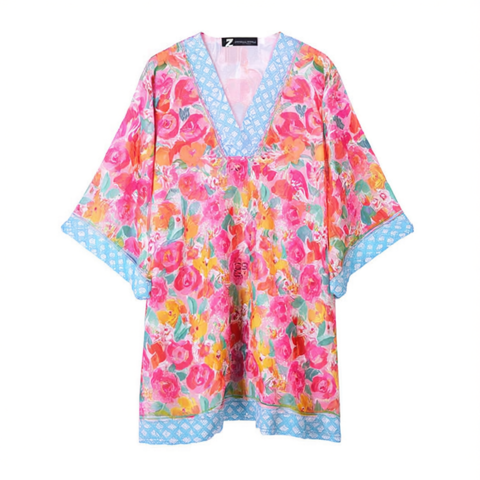 Robe de plage à manches mi-longues à motif rose 88x54cm, paréo de bain