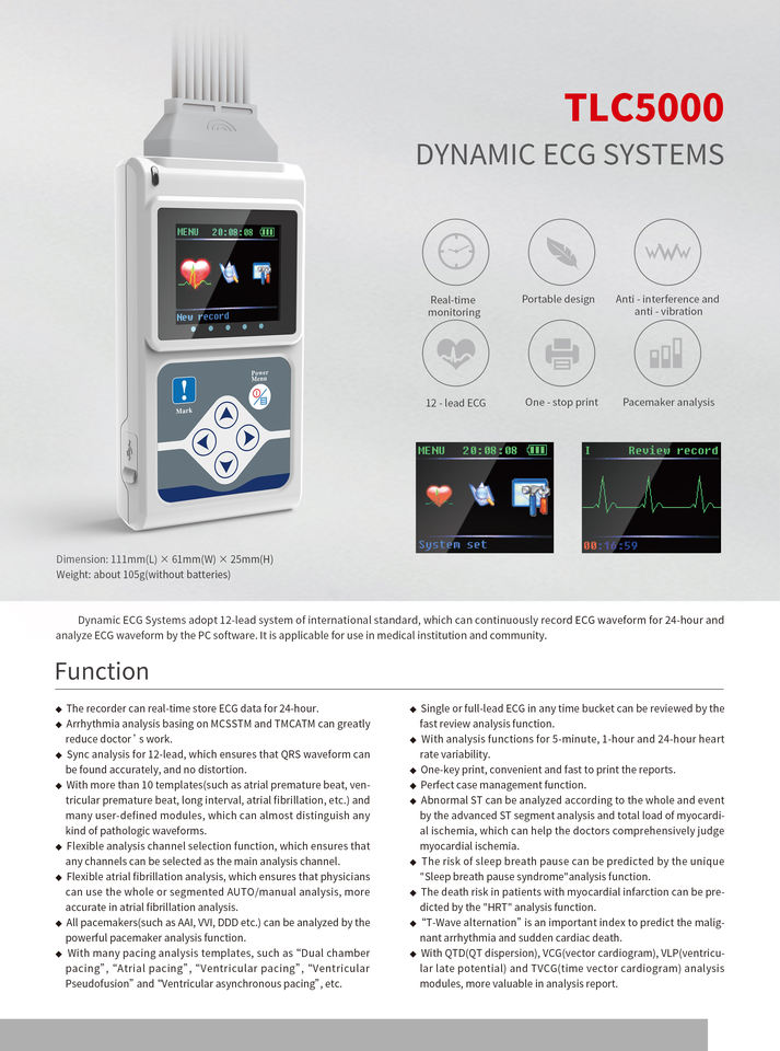 Moniteur vétérinaire ZY-TLC5000 à prix d'usine 12 fils système ECG dynamique 48 heures Holter ECG portable appareil médical domestique