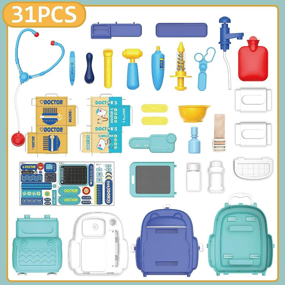 Sacs à dos vétérinaires, ensemble de jouets de petit médecin, mini clinique de médecin, jouet médical de médecin, valise 3 en 1