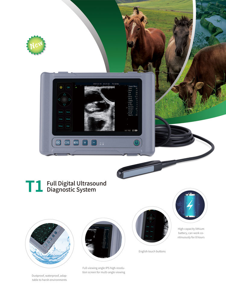 Appareil d'échographie vétérinaire portable avec écran 8 pouces, batterie 10000 mAh, fonction de mesure automatique de la graisse dorsale, 16 canaux, sûr