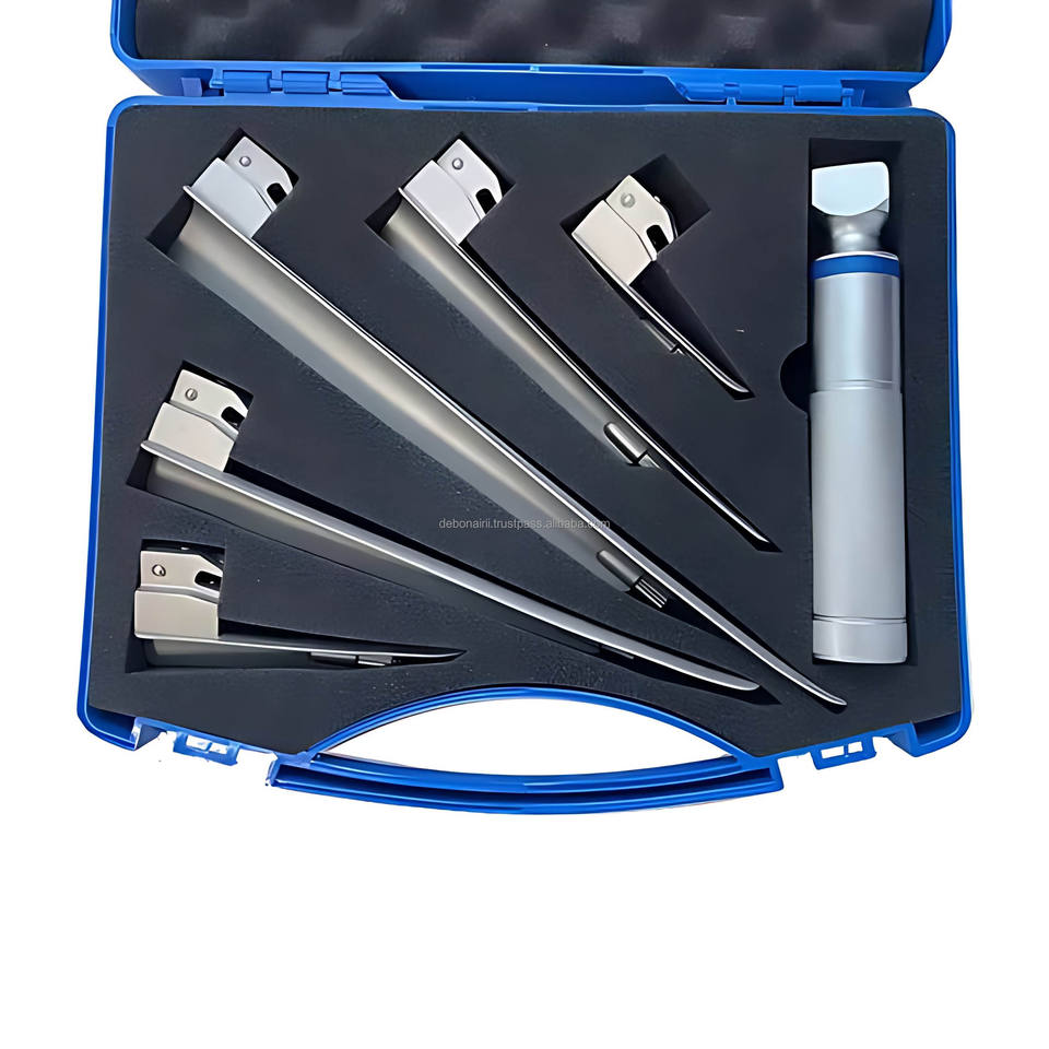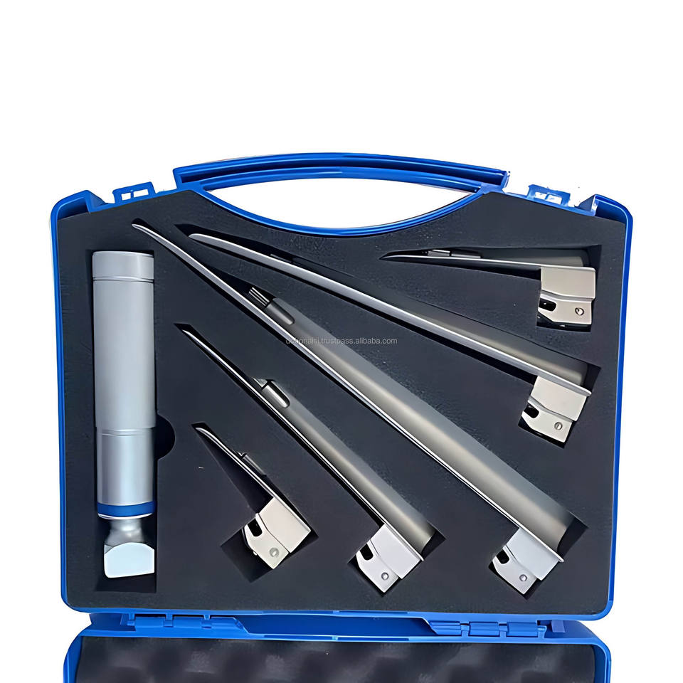 Ensemble de laryngoscope LED en acier inoxydable pour usage vétérinaire avec 5 lames droites de type Miller, batterie amovible