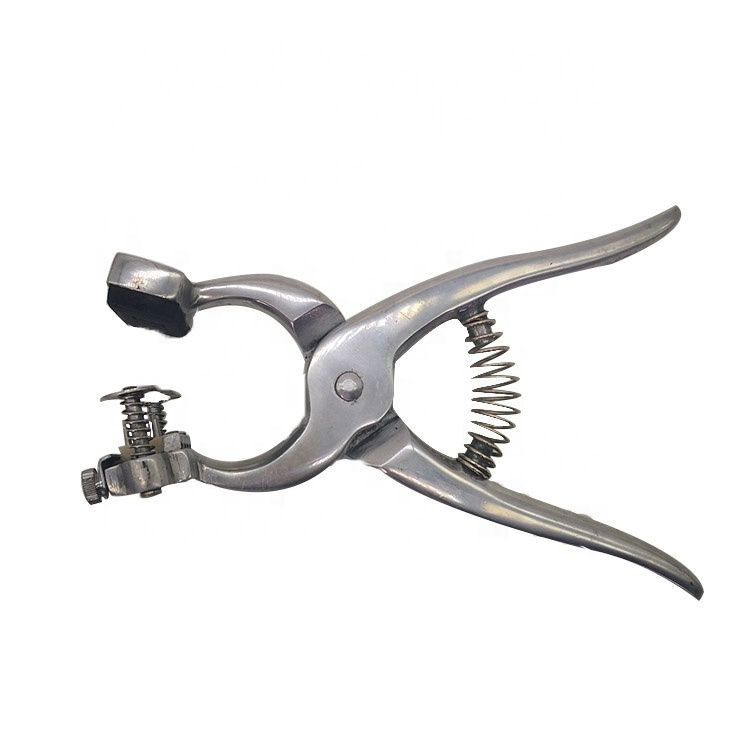 Pince à tatouer vétérinaire en acier inoxydable réutilisable, durable et réglable pour chevaux et grands animaux, applicateur d'oreilles à éperons pour marquage et identification
