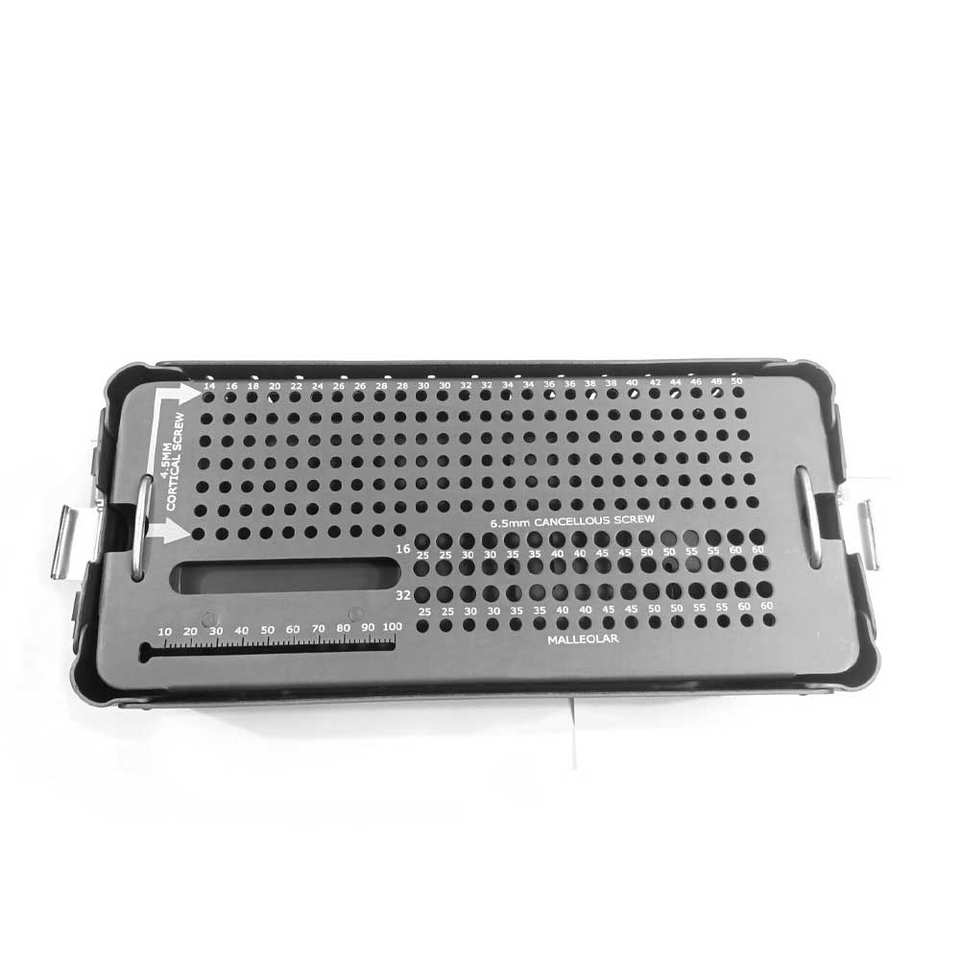 Boîte vide en aluminium pour instruments chirurgicaux orthopédiques vétérinaires pour vis corticales de 4 à 5 mm