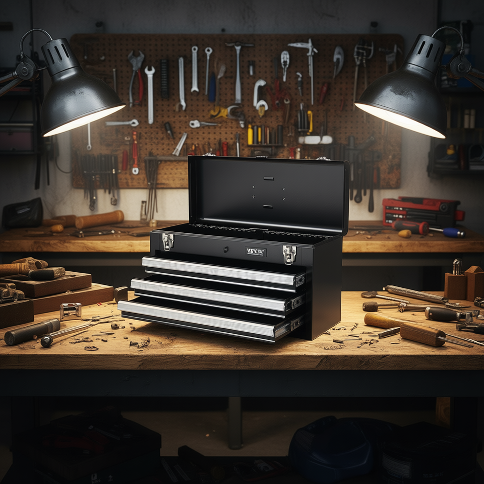 Boîte à outils en métal Vevor de 20,5 pouces avec 3 tiroirs, organisateur noir pour atelier