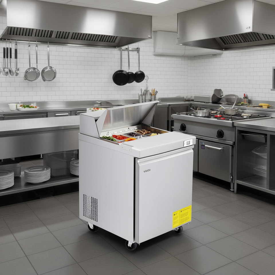 Réfrigérateur commercial Vevor 28 pouces, 7,1 pieds cubes, en acier inoxydable, table de préparation de salades à porte simple, table de préparation de sandwichs, 8 bacs