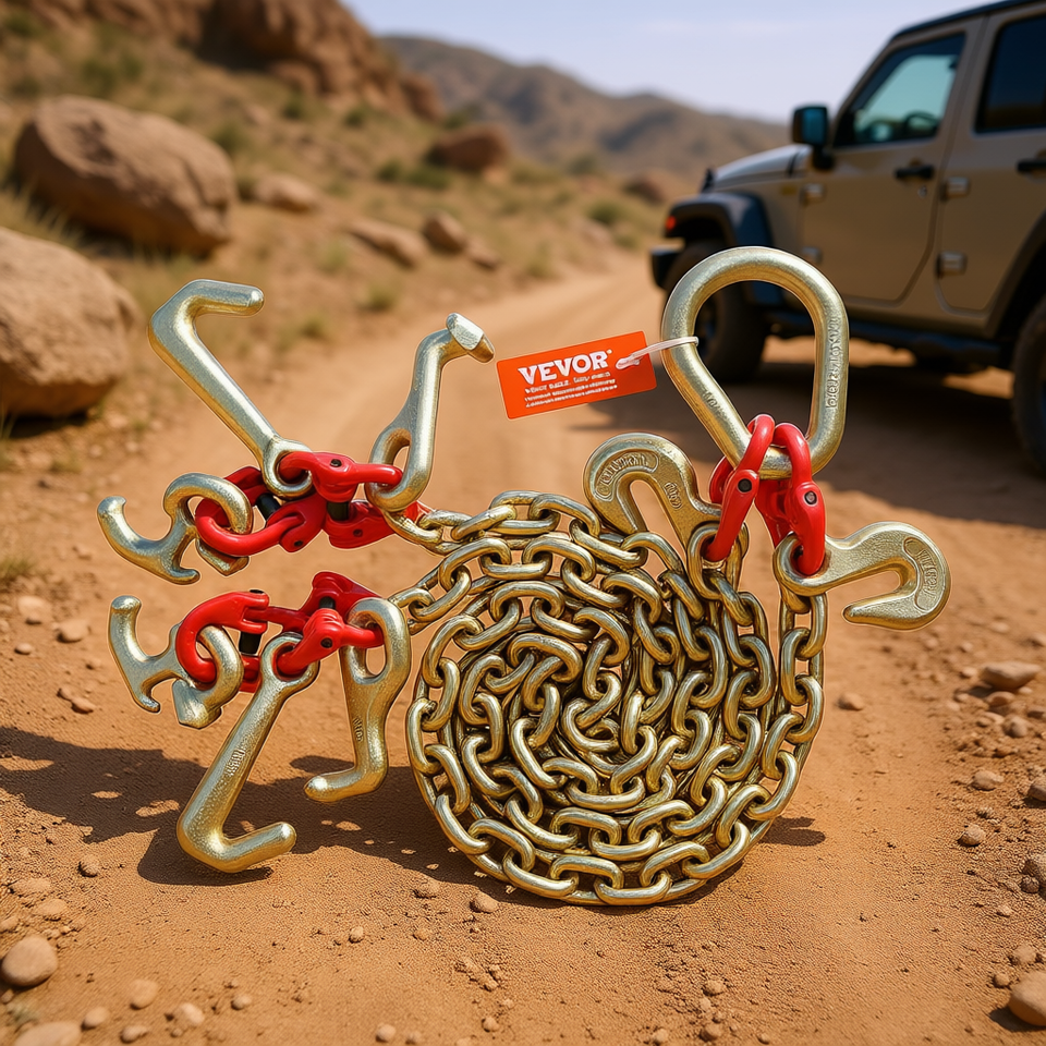 Chaîne de remorquage Vevor 5/16 po x 3 pi G80 avec crochets de préhension RTJ, capacité de 10 800 lb pour le récupération de véhicules