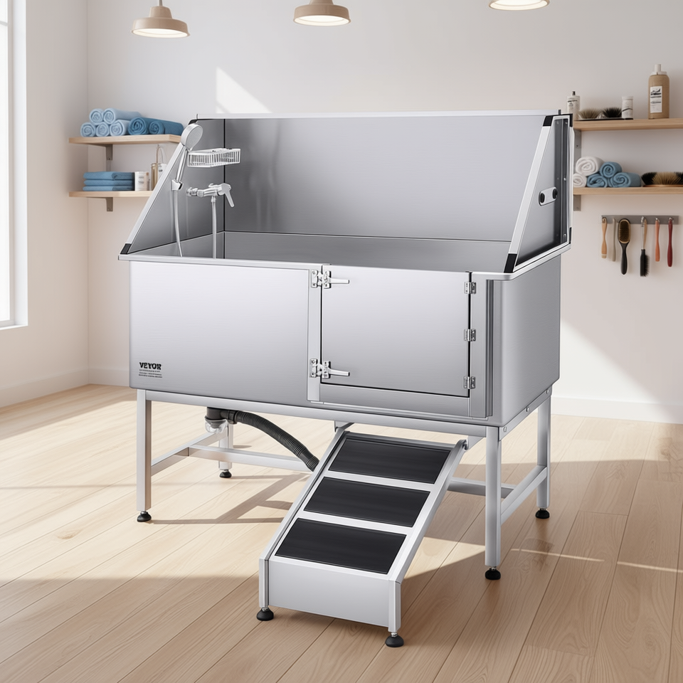 Baignoire de toilettage pour chien Vevor 62 pouces en acier inoxydable avec rampe et filtre pour le nettoyage et le bain des chiens