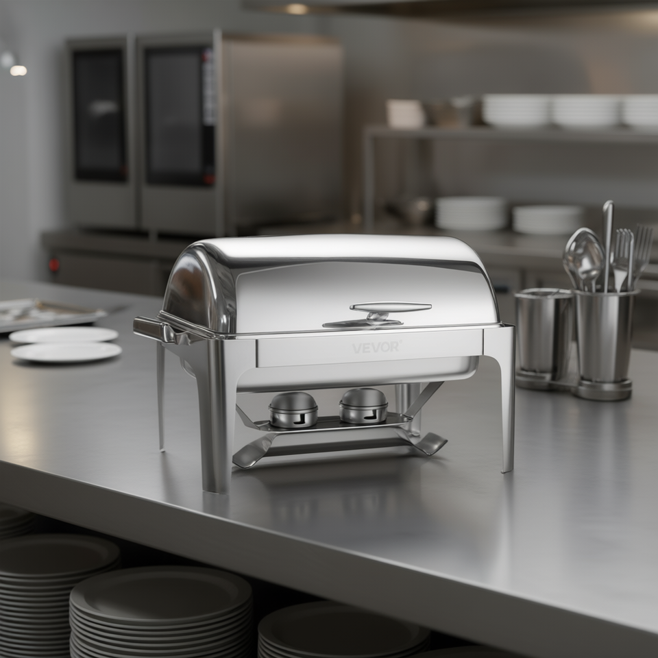 Plat de maintien au chaud rectangulaire en acier inoxydable de 9 litres avec couvercle roulant