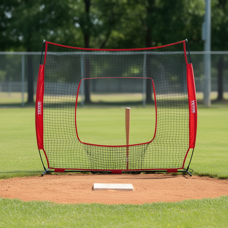 Filet d'entraînement de baseball Vevor 7x7 pieds avec sac de transport pour l'entraînement au frappeur et à la frappe, aide pour la zone de frappe