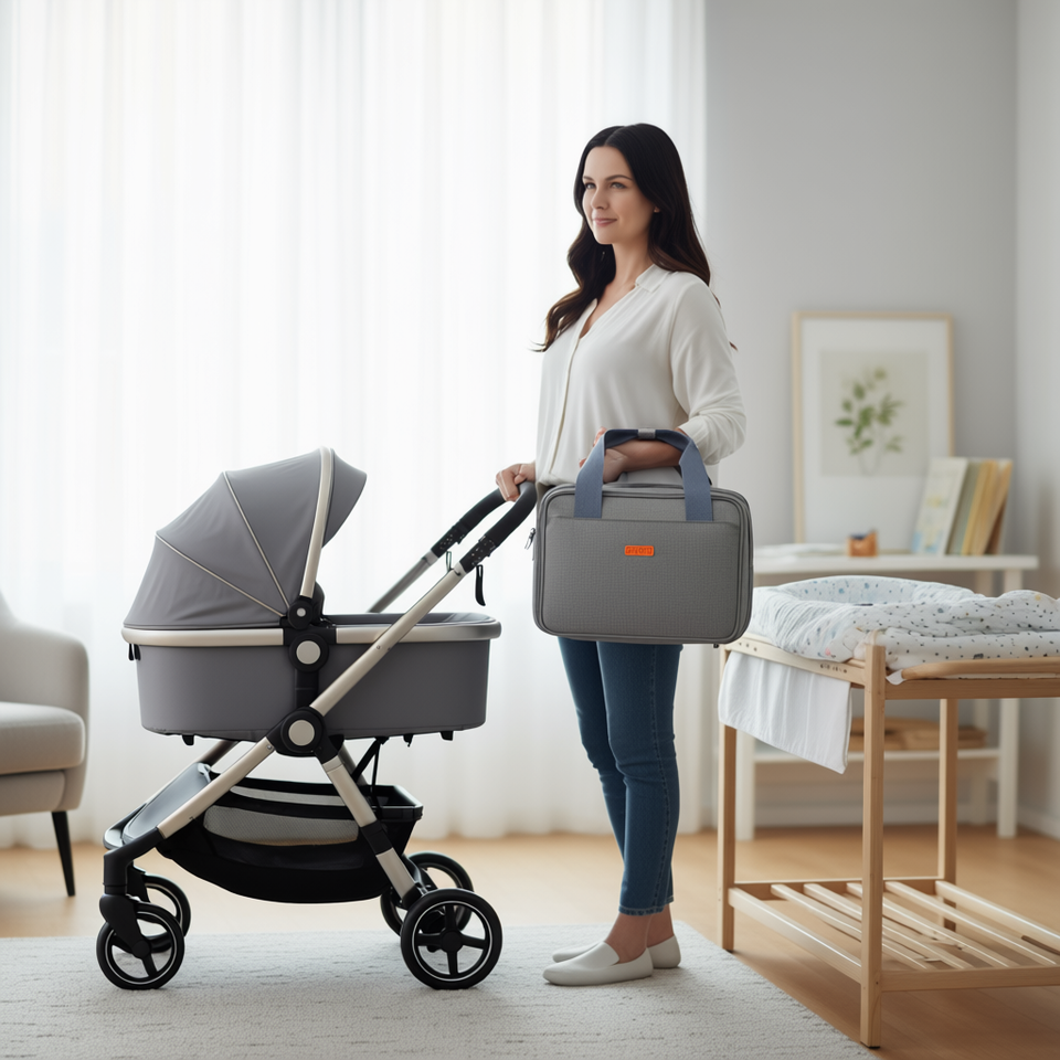 Étui de transport pour tire-lait, gris clair, taille moyenne, en tissu avec poignée, pour M5 M6, pour le travail, les voyages, l'usage familial