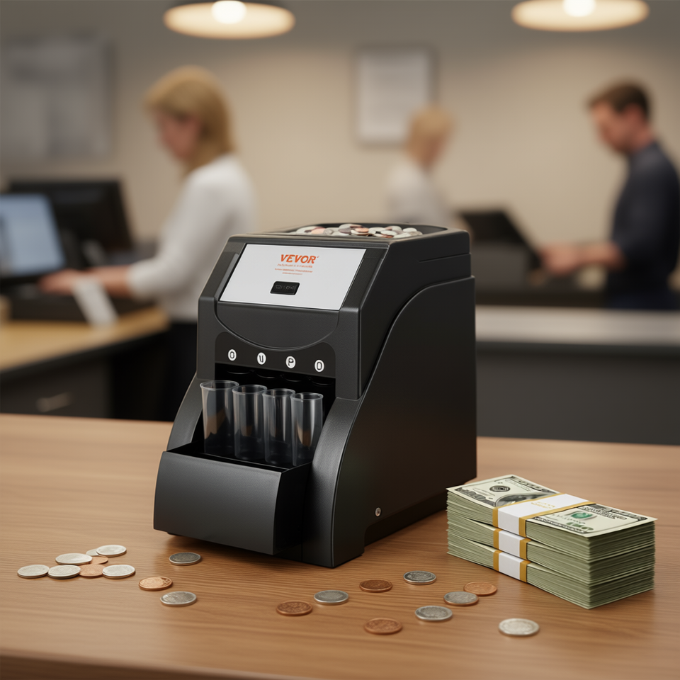 Machine de tri de pièces de monnaie Vevor, capacité de 230 pièces, 4 tubes (1, 5, 10, 25 cents), usage commercial