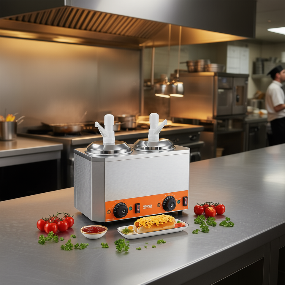 Commercial Electric Cheese Dispenser 2.3x2 Qt Double Pumps Temperature Adjustable Warming Holding Equipment for Hot Fudge