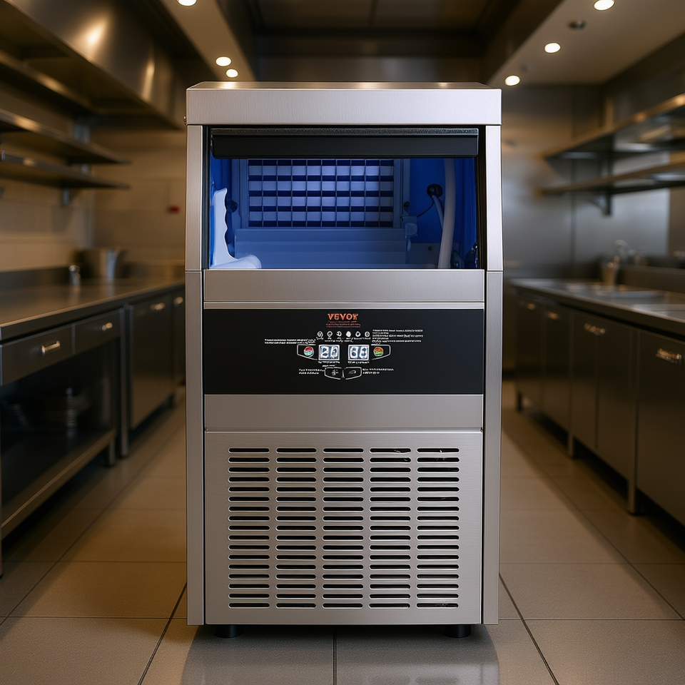 Machine à glaçons commerciale 80-90 lbs/24h, fonctionnement automatique, acier inoxydable, autoportante, pour cuisine
