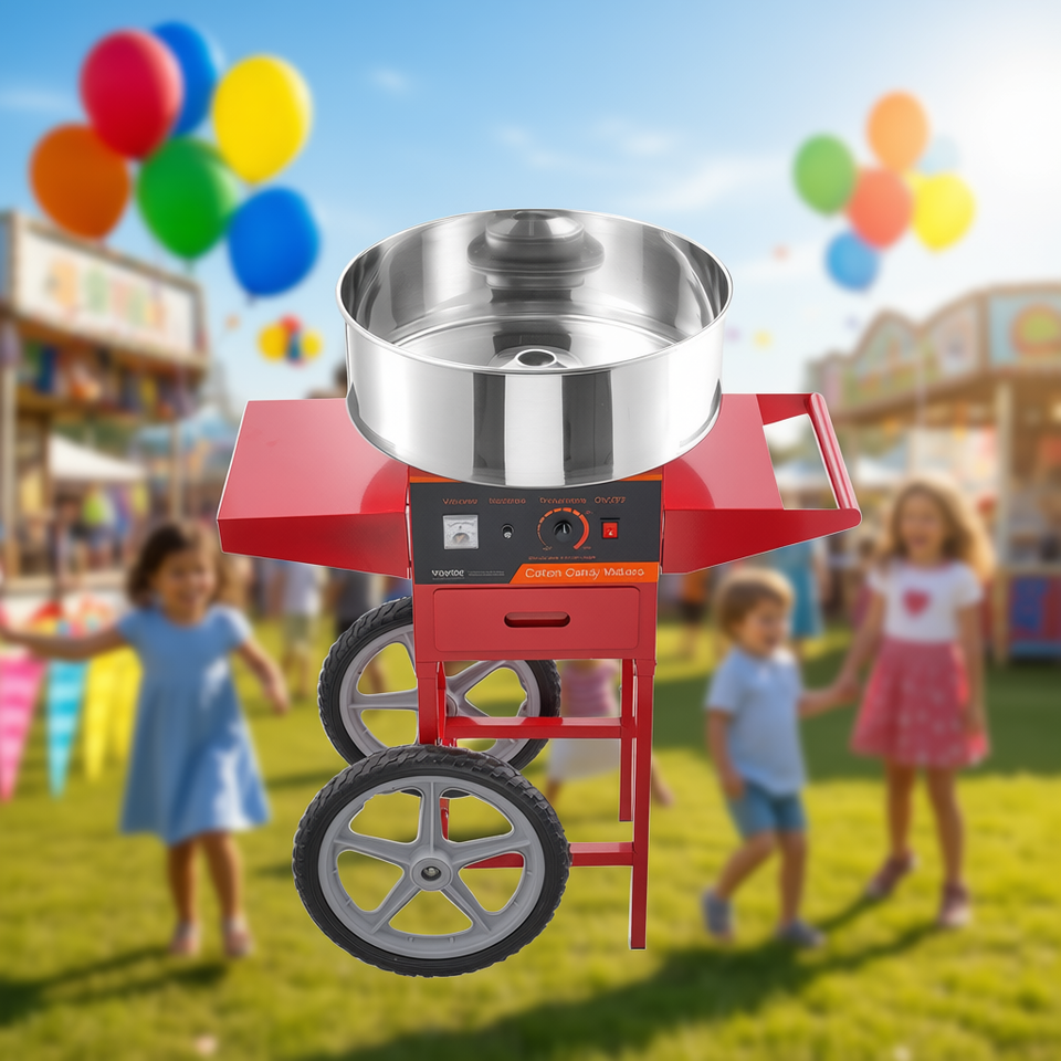 Machine à Barbe à Papa Vevor 1000W, Bol en Acier Inoxydable, Alimentation Secteur, Rouge, avec Tiroir, Idéale pour la Maison et les Anniversaires d'Enfants