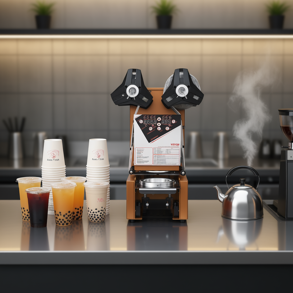 Scelleuse électrique entièrement automatique pour thé Boba Vevor, 500-650 tasses, contrôle numérique, panneau LCD, machine de scellage thermique