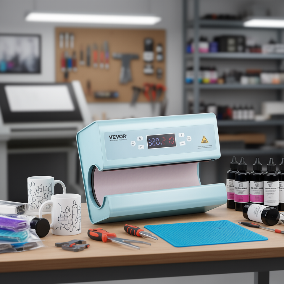 Presse à chaud Vevor 11-30oz pour sublimation de tasses, couleur bleue, semi-automatique, pneumatique, 110V