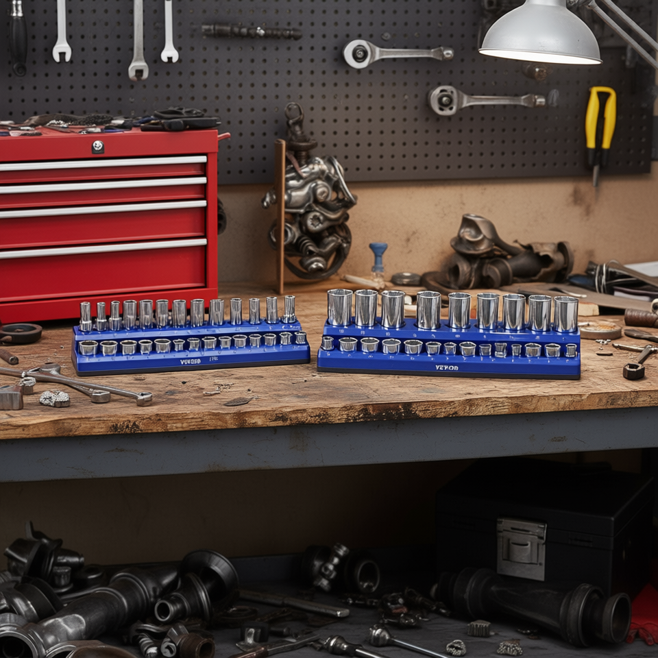Ensemble d'organisateurs de douilles magnétiques Vevor, 3 pièces, plateaux bleus, métriques, entraînement hexagonal 1/4 pouce, chromé, qualité industrielle