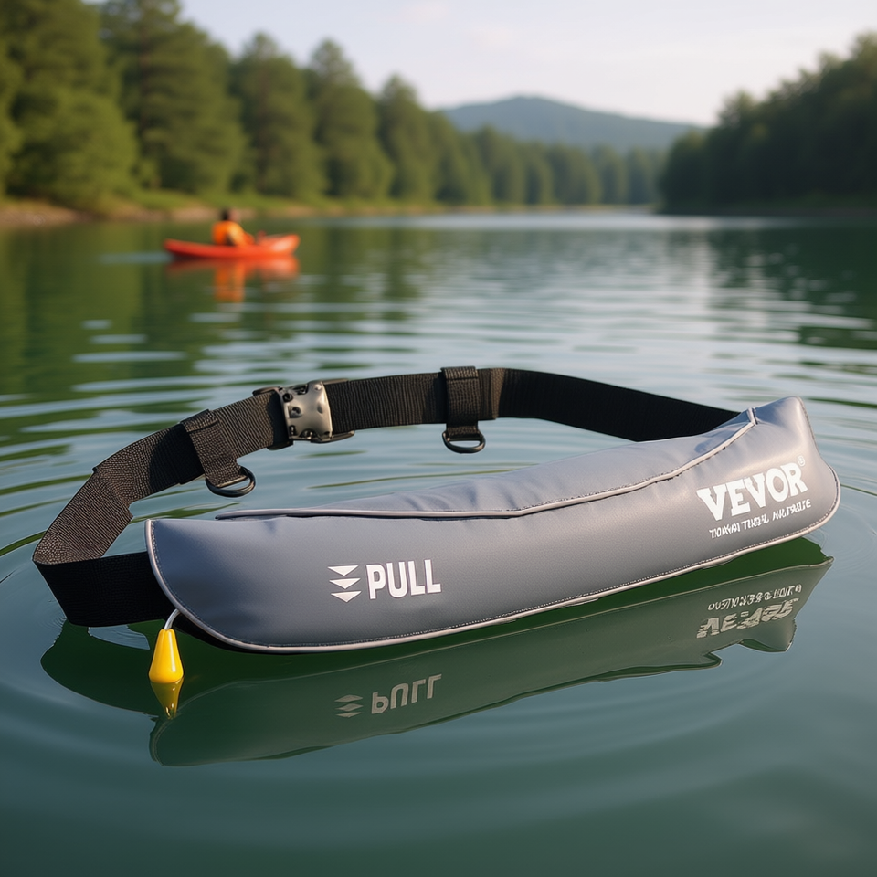 Gilet de sauvetage gonflable manuel Vevor gris clair avec ceinture, pour adulte, sécurité aquatique, PFD, tissu Oxford, modèle D0100X3GKZ6