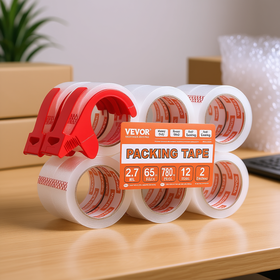 Ruban adhésif d'emballage Vevor 2,7 mil, 65 yards, 12 rouleaux avec distributeur, ruban adhésif transparent pour expédition