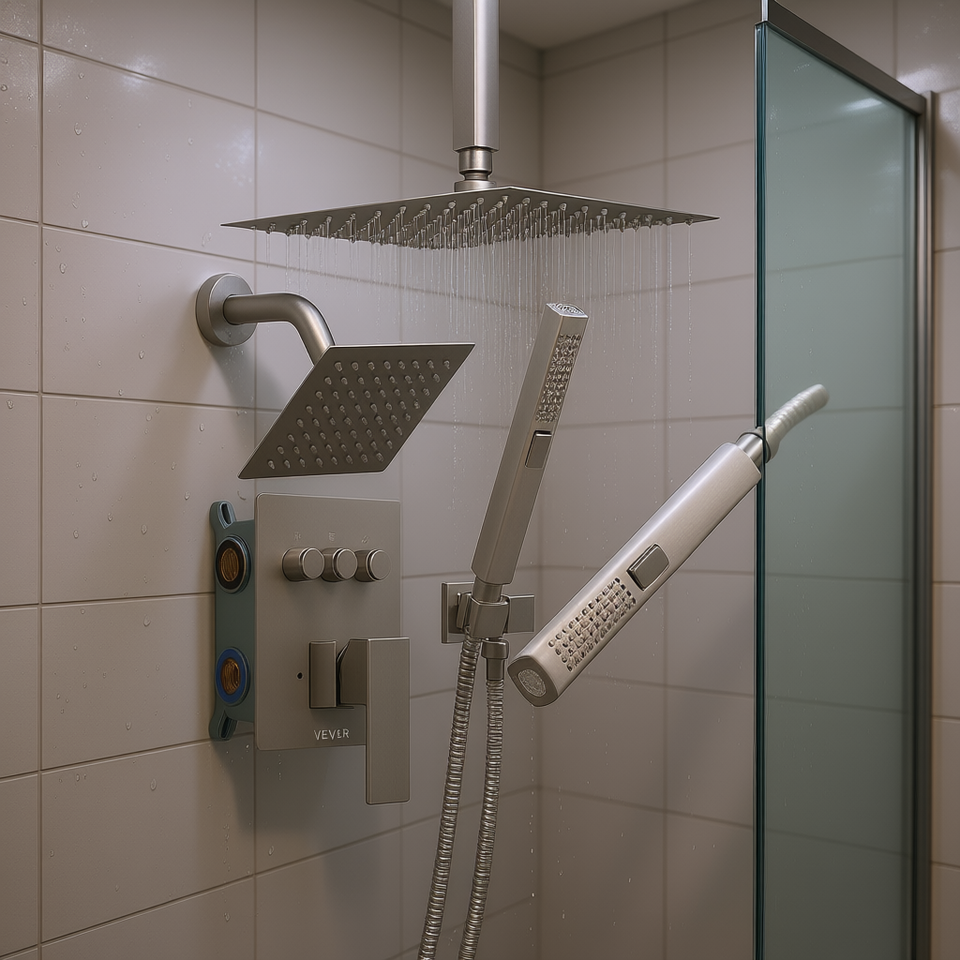 Système de douche pluie Vevor 10 pouces mural avec double pommeau de pluie, ensemble de robinetterie en laiton et 2 douches à main pour salle de bain