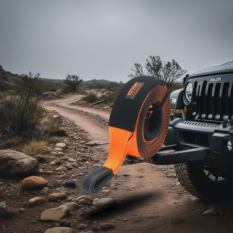 Sangle de remorquage Vevor 4 x 30' 46500 Lbs résistance à la rupture, boucle triple renforcée, protection des arbres, remorquage routier