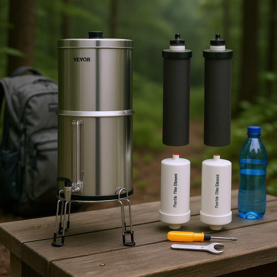 Vevor Stainless Steel Countertop Water Filter 2.25 Gal Gravity Fed With 4 Stage Outdoor Filters