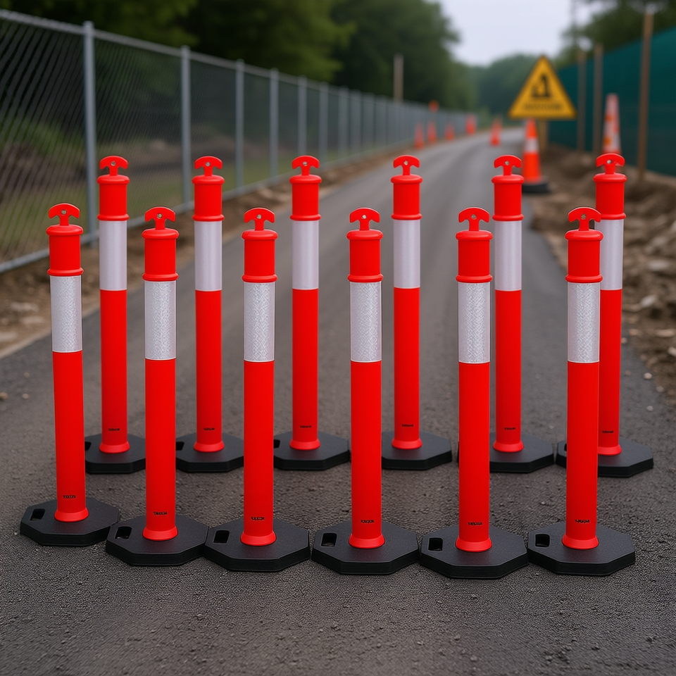 Poteaux de délimitation routière Vevor, 48 pouces, réfléchissants, en plastique rouge, base lestée, pour la construction, les autoroutes, la sécurité routière